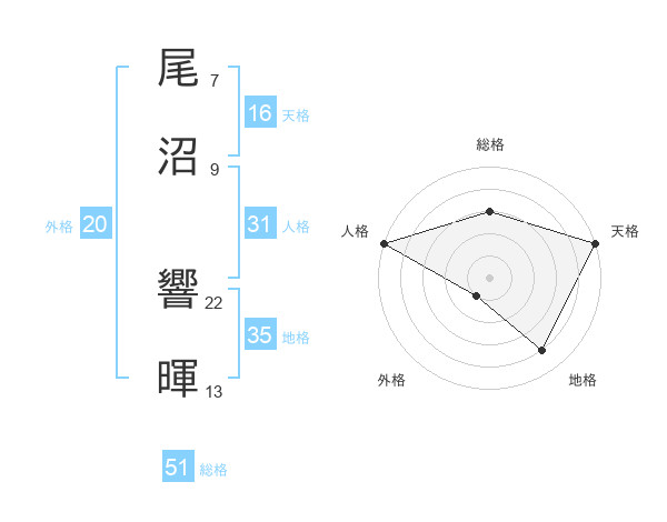 尾沼 響暉さんを姓名の画数から五運を鑑定