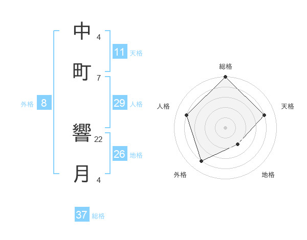 中町 響月さんの総格は37画の5点!
