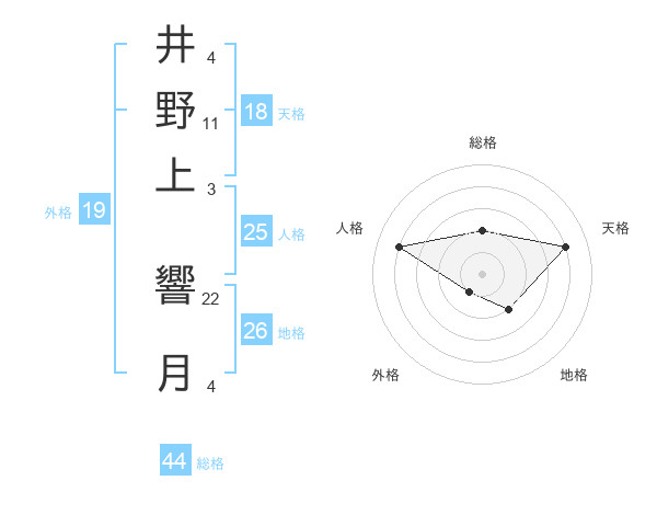 占い結果は姓名判断である以上、良い場合も悪い場合もありますが、決してお名前を誹謗中傷するものでなく、画数の自動計算によって得られたものです。また、本サイトの検索によって得られた鑑定結果で、第三者を誹謗中傷したり名誉を棄損するような行為を禁じます。