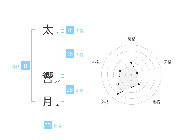 太 響月さんの外格は8画の4点!
