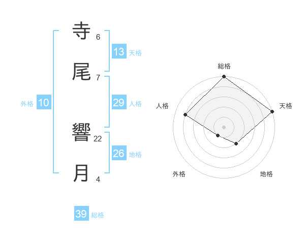 寺尾 響月さんの総格は39画の5点!