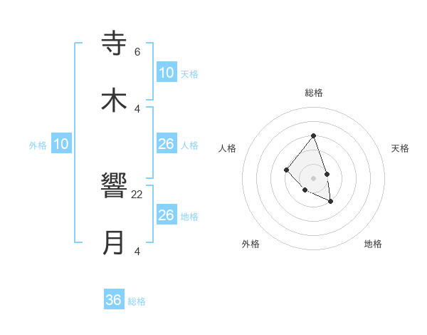 寺木 響月さんの地格は26画の2点!