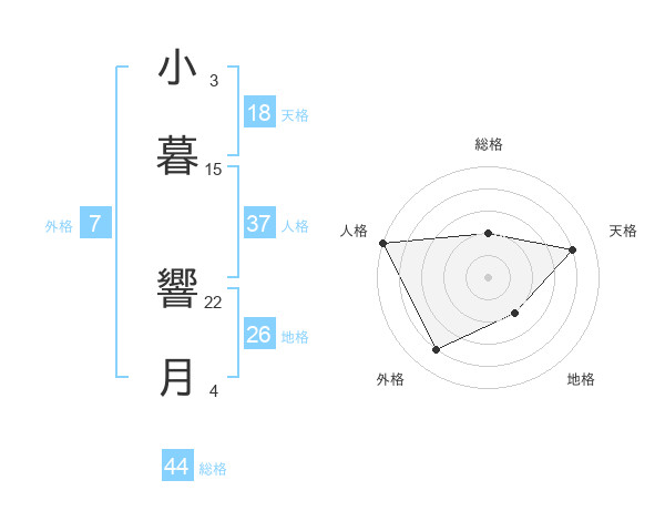 小暮 響月さんの総格は44画の2点!
