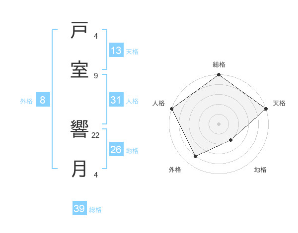 戸室 響月さんの総格は39画の5点!