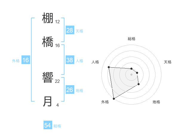 棚橋 響月さんの総格は54画の1点!