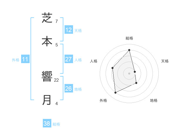 芝本 響月さんの総格は38画の4点!