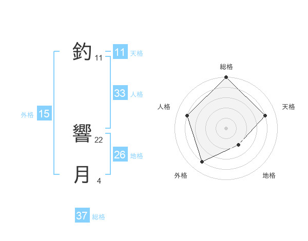 釣 響月さんの天格は11画の4点!