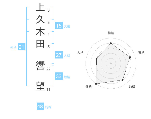 上久木田 響望さんを姓名の画数から五運を鑑定