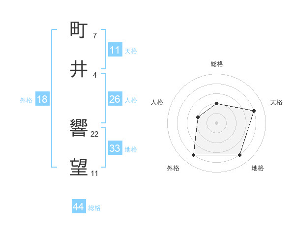 町井 響望さんの総格は44画の2点!