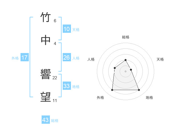 竹中 響望さんの総格は43画の2点!