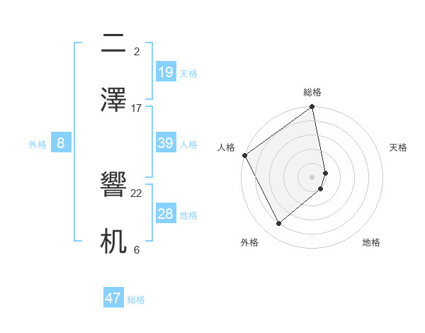 二澤 響机さんの総格は47画の5点!