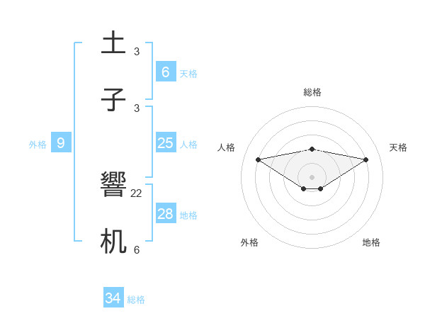 土子 響机さんの総格は34画の2点!