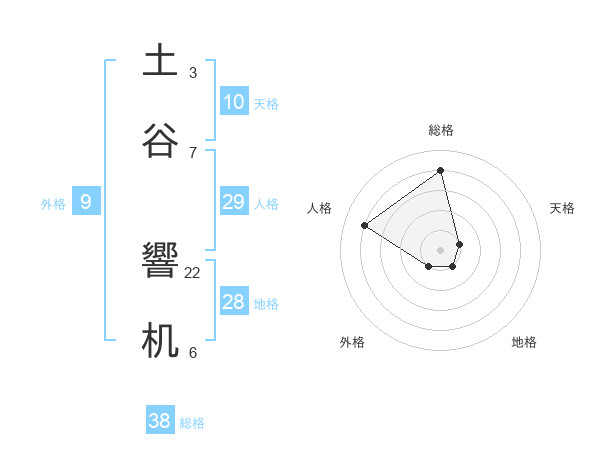 土谷 響机さんの総格は38画の4点!