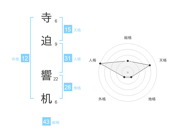 寺迫 響机さんの総格は43画の2点!