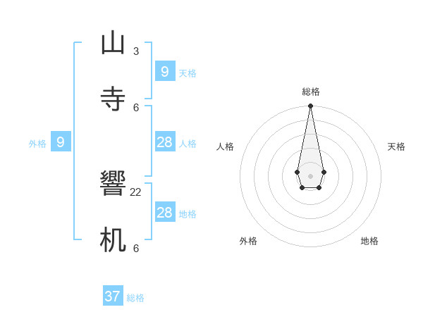 山寺 響机さんの総格は37画の5点!