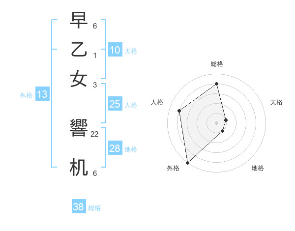 早乙女 響机さんの総格は38画の4点!
