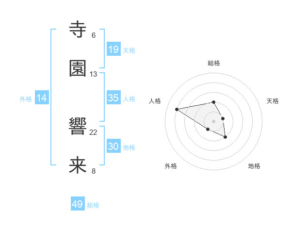 寺園 響来さんを姓名の画数から五運を鑑定