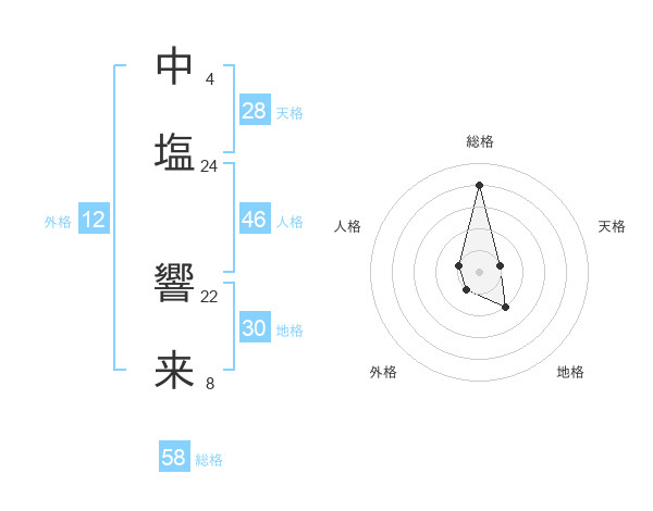 中塩 響来さんの総格は58画の4点!