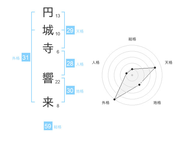 円城寺 響来さんを姓名の画数から五運を鑑定