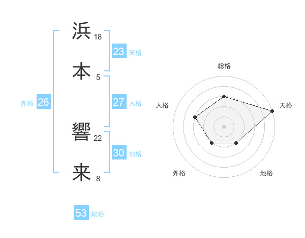 浜本 響来さんの総格は53画の3点!