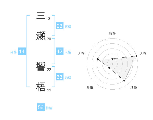 三瀬 響梧さんの天格は23画の5点!