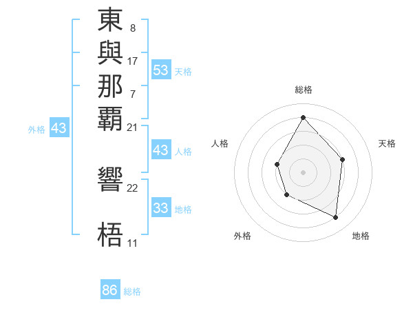 東與那覇 響梧さんを姓名の画数から五運を鑑定