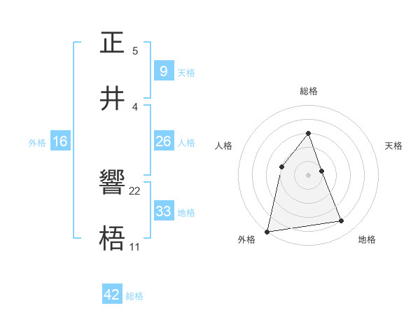 正井 響梧さんの総格は42画の3点!