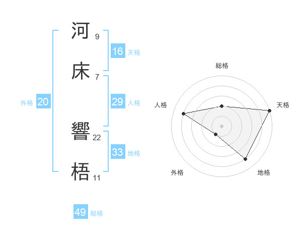 河床 響梧さんの総格は49画の2点!