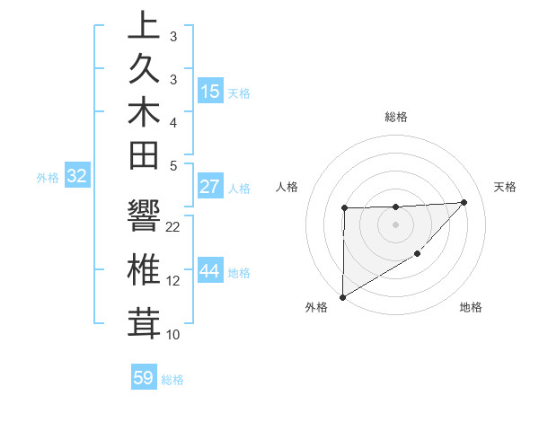 上久木田 響椎茸さんの総格は59画の1点!