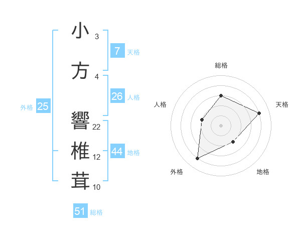 小方 響椎茸さんを姓名の画数から五運を鑑定