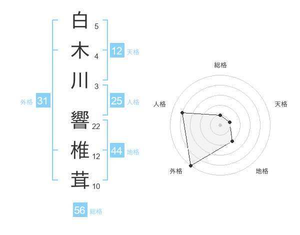 白木川 響椎茸さんを姓名の画数から五運を鑑定