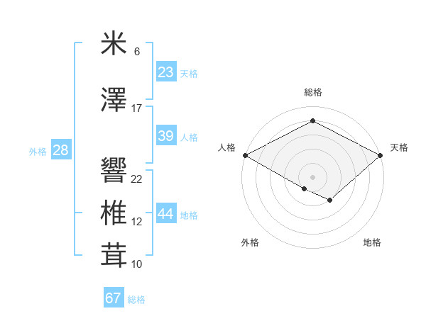 米澤 響椎茸さんを姓名の画数から五運を鑑定