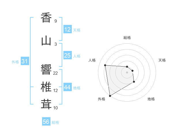 香山 響椎茸さんを姓名の画数から五運を鑑定