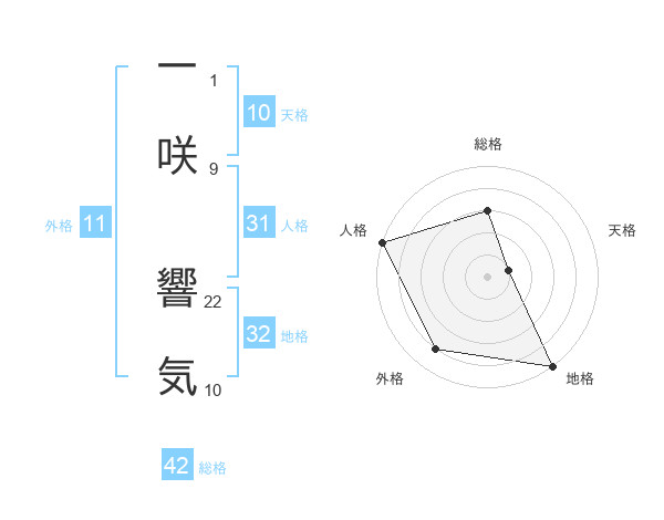 一咲 響気さんを姓名の画数から五運を鑑定