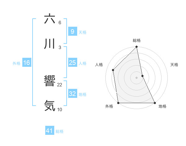 六川 響気さんの地格は32画の5点!