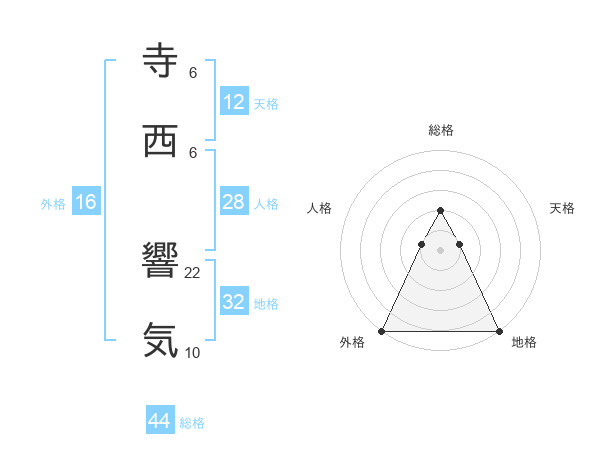 寺西 響気さんの総格は44画の2点!