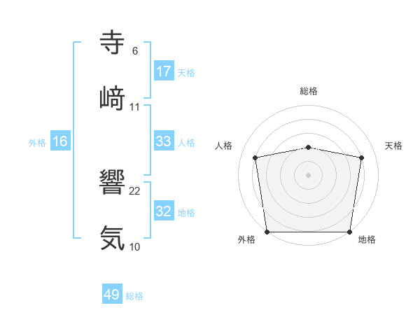 寺﨑 響気さんを姓名の画数から五運を鑑定