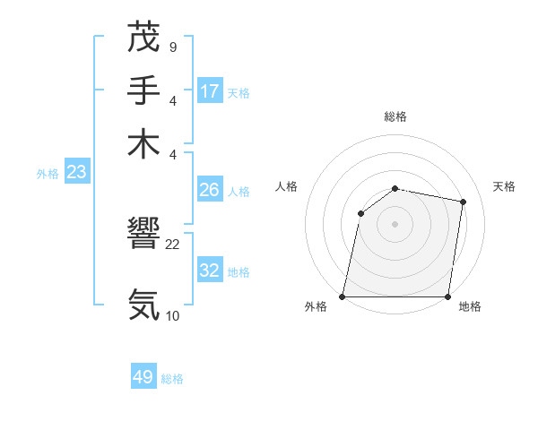 茂手木 響気さんを姓名の画数から五運を鑑定
