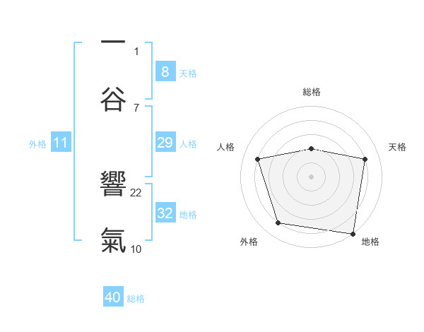一谷 響氣さんの総格は40画の2点!