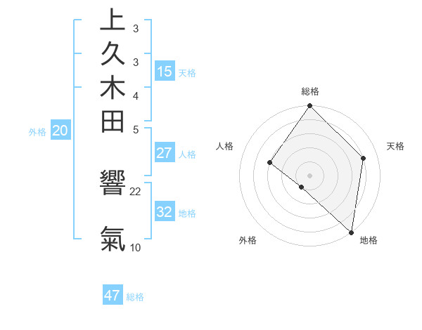 上久木田 響氣さんを姓名の画数から五運を鑑定