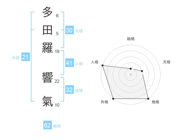 多田羅 響氣さんを姓名の画数から五運を鑑定