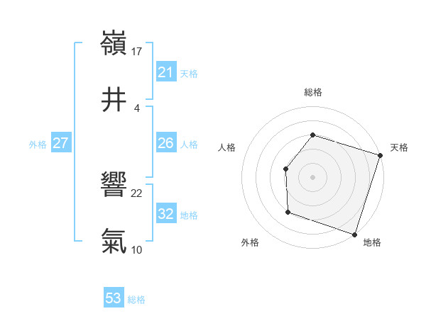 嶺井 響氣さんの天格は21画の5点!