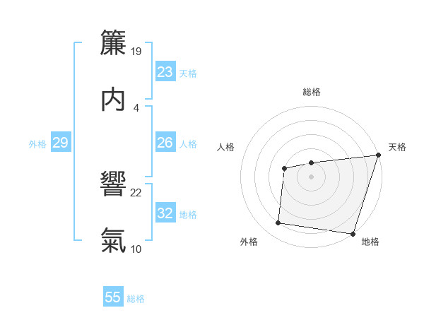 簾内 響氣さんを姓名の画数から五運を鑑定