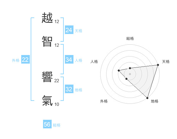 越智 響氣さんの外格は22画の1点!