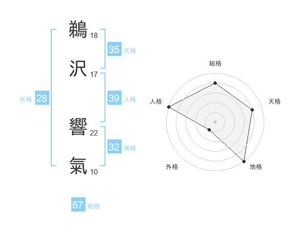 鵜沢 響氣さんを姓名の画数から五運を鑑定