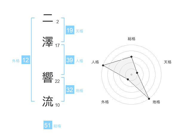 二澤 響流さんの総格は51画の3点!