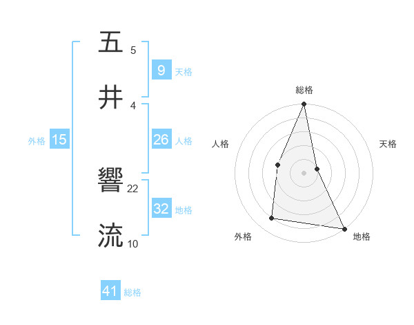 五井 響流さんの地格は32画の5点!