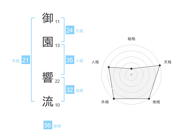 御園 響流さんの天格は24画の5点!