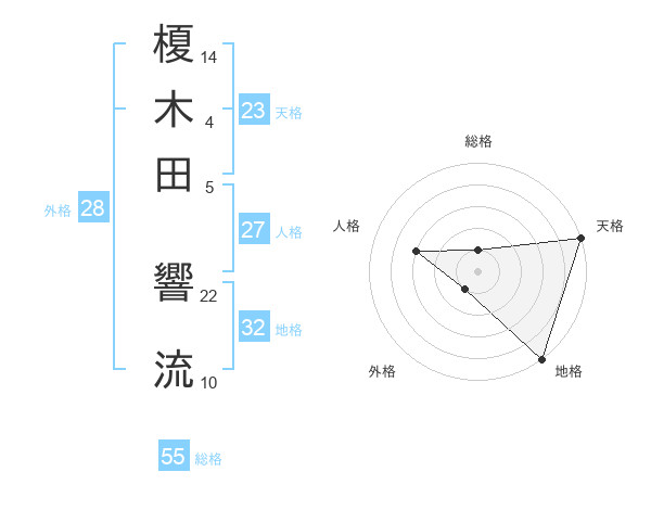 榎木田 響流さんを姓名の画数から五運を鑑定