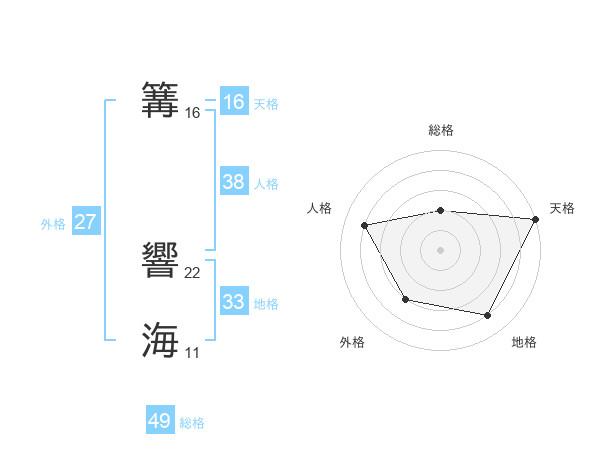 篝 響海さんの外格は27画の3点!